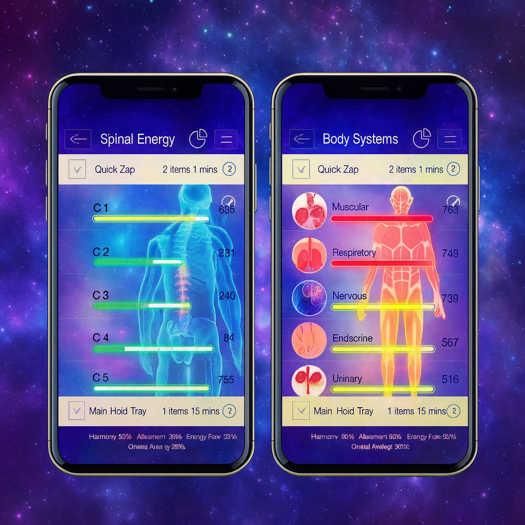 Energetic Feedback: Using waveforms and sacred sound frequencies, the app gently delivers balancing tones designed to restore harmony and coherence throughout your system.